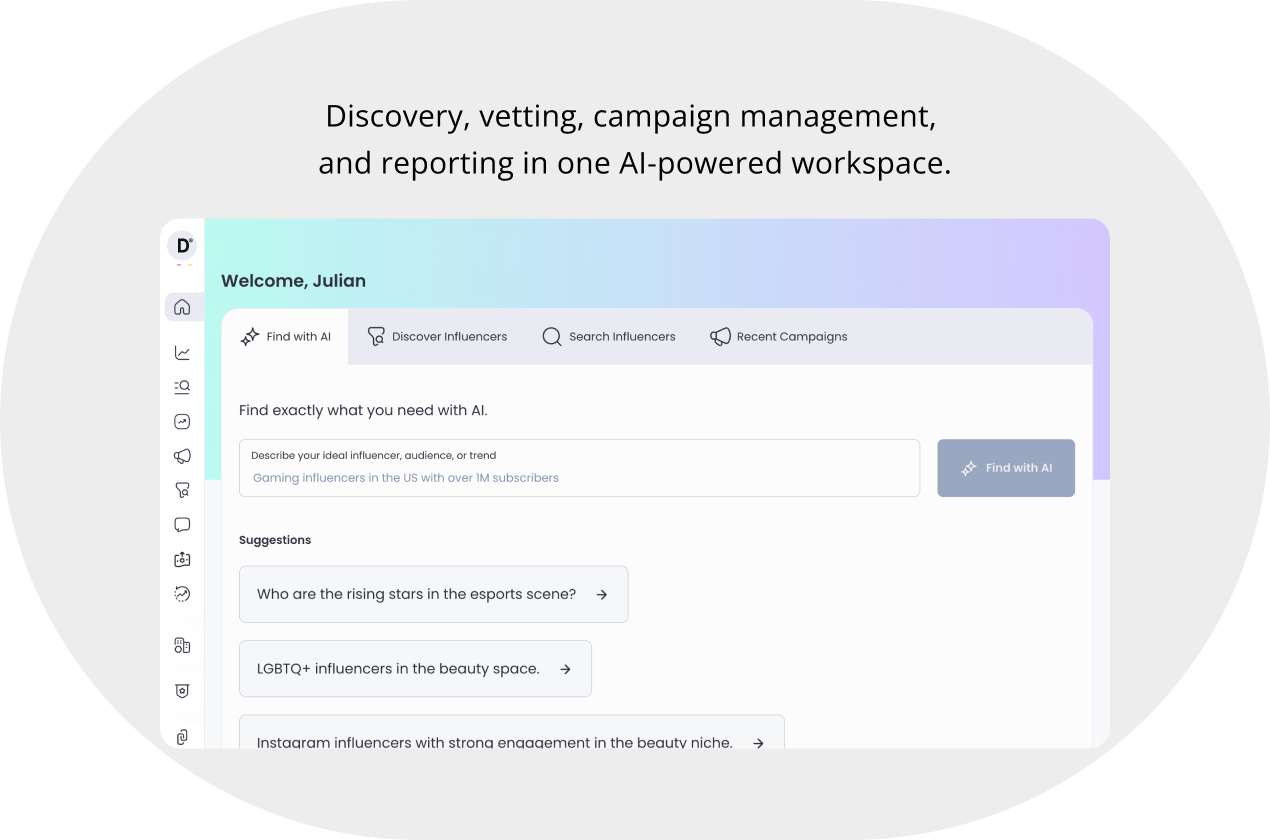 - Influencer: Unlimited search, 500 analyses, 3,000 email exports, 400 managed influencers, 10 workspaces