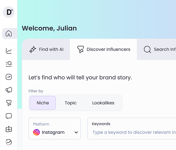 - Influencer: Unlimited search (400M+), 50 analyses, 250 email exports, 100 managed influencers, 1 workspace